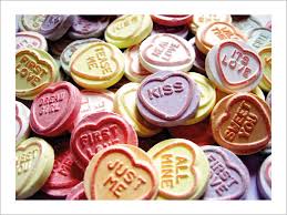 Conversation Hearts. Small heart shaped fruit flavoured fizzy lollies with messages. (approx 20mm diameter) Ideal for weddings, engagement parties, etc. Each lolly has it's own message on one side and a heart on the other.